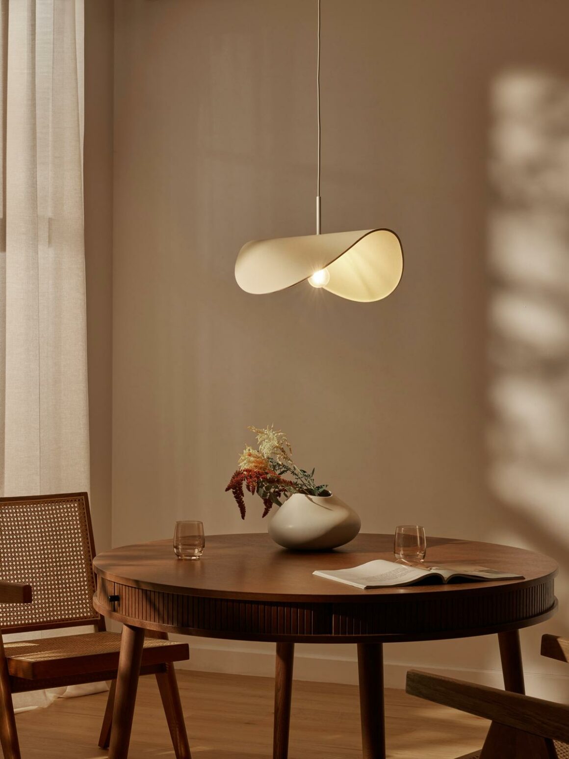 Applique design 87,00 € – Suspension design en lin 129,00 € – Grande lampe à poser 99,00 € – Suspension en lin 49,99 €.